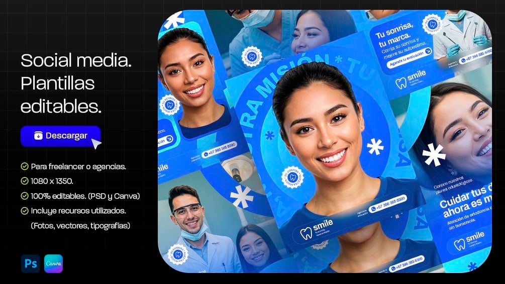 Odontología 2.0 - Social media (Editable PSD y Canva) + Recursos.