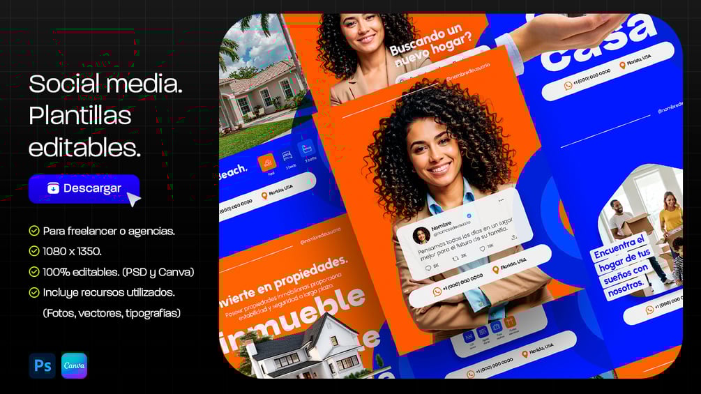 Realtor 2.0 - Social media (Editable PSD y Canva) + Recursos.